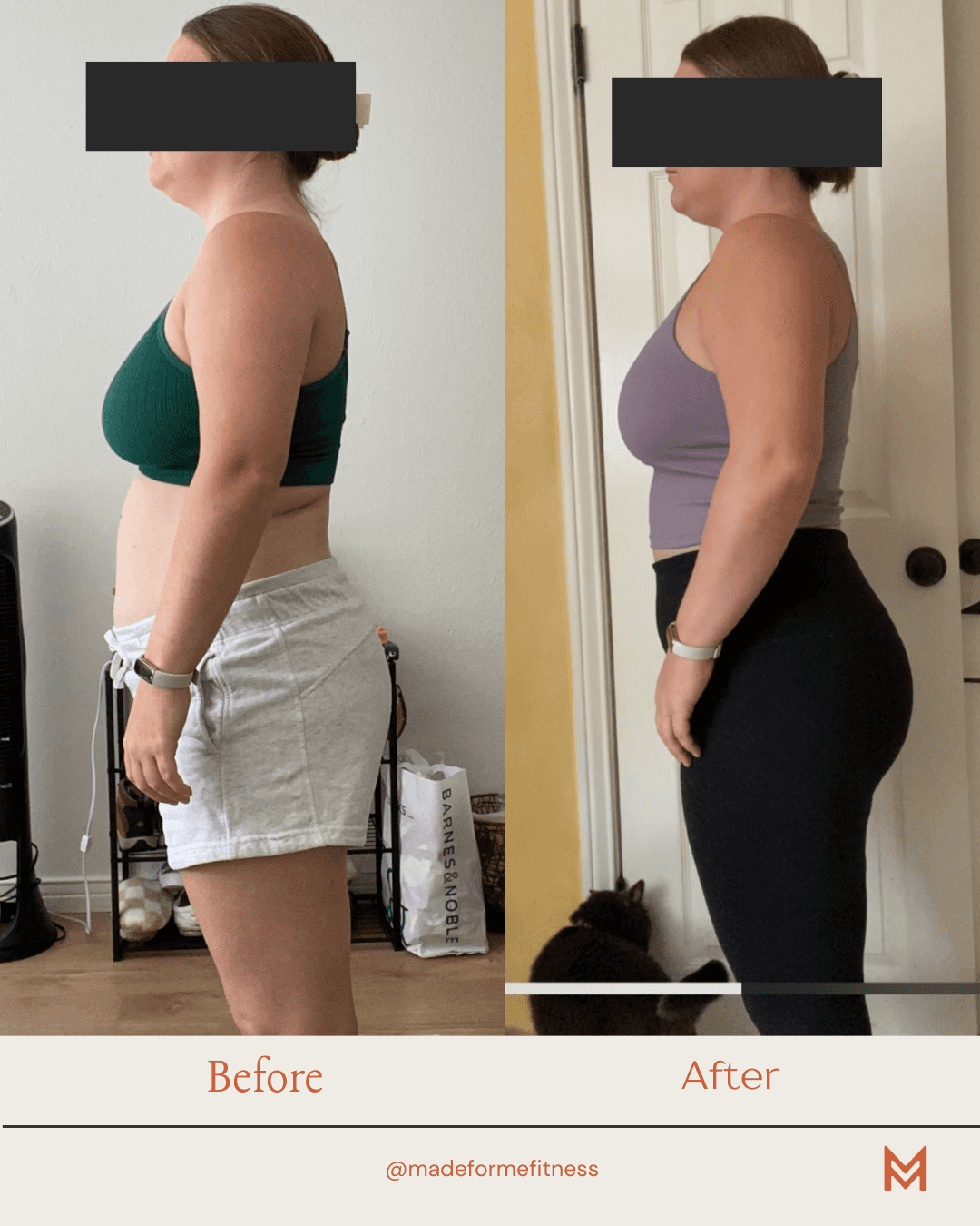 The algorithm did its thing and I came across one of Liz's reels about helping people overcome -injuries/muscle imbalances, etc.- with weight training. I listened to almost her entire podcast before setting up an intro call. I loved her personality and training/education style. Even though I felt nervous and was intimidated a bit by her/the whole process, I had a feeling she would be able to help me. I wanted to gain strength back in my right leg/knee, get stronger/toned, lose fat, and I needed personal, encouraging support tailored to me. I was also worried about the money/investment it would take, but I was more worried about not being able to exercise ever again (dramatic feeling, but felt real). I also was hesitant of it being 'the right time' to start a program because my schedule was crazy and there was a lot on my plate, emotionally too, with life/work.